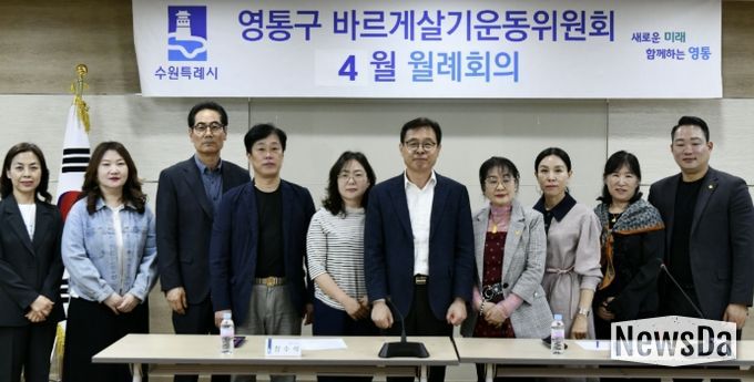 뉴스다 최광묵 기자 | 수원시 영통구는 지난 24일 바르게살기운동 영통구지도위원회가 영통구청 상황실에서 각 동 위원장 및 총무 등 14명이 참석한 가운데 4월 월례회의를 개최했다고 밝혔다.