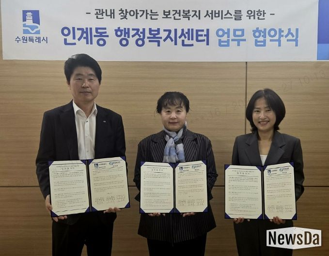뉴스다 최광묵 기자 | 수원시 팔달구 인계동은 지난 24일, 지역사회보장협의체과 한전MCS(주) 경기지사 및 직할지점과 함께 취약계층 발굴과 지속적인 인적안전망 활동 참여를 위한 업무 협약을 체결했다.