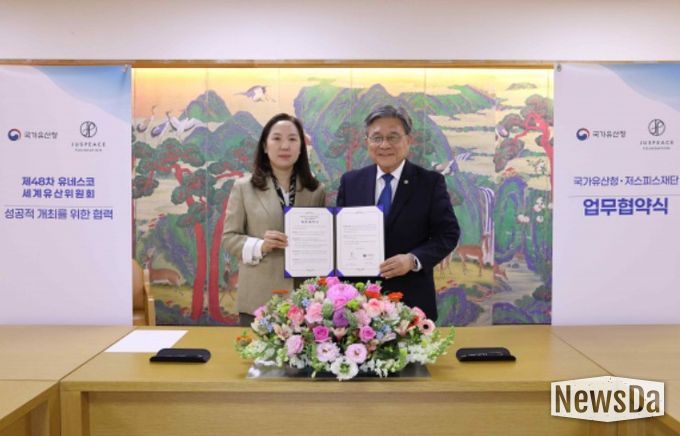 뉴스다 최광묵 기자 | 국가유산청은 저스피스재단과 4월 24일 오후 2시 국립고궁박물관(서울 종로구)에서 제48차 유네스코 세계유산위원회 회의(48th Session of the World Heritage Committee)의 성공적 개최를 위한 업무협약을 체결했다.