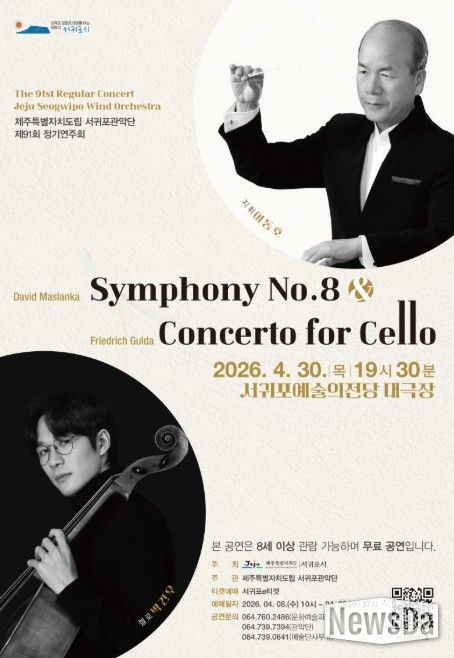 뉴스다 최광묵 기자 | 서귀포시는 4월 30일 19시 30분 서귀포예술의전당 대극장에서 ‘제주특별자치도립 서귀포관악단 제91회 정기연주회’를 개최한다.