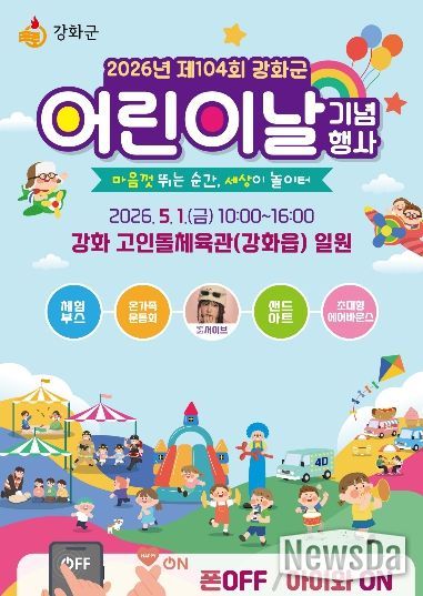 뉴스다 최광묵 기자 | 강화군은 제104회 어린이날을 맞아 오는 5월 1일 오전 10시부터 강화읍 고인돌체육관에서 어린이날 기념행사를 개최한다.