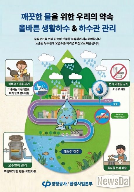 뉴스다 최광묵 기자 | 양평공사은 군민의 삶이 행복한 자연 친화적인 양평을 구현하기 위해 ‘2026년 올바른 생활하수 배출 및 빗물받이 관리 홍보 활동’을 본격적으로 추진한다고 밝혔다.