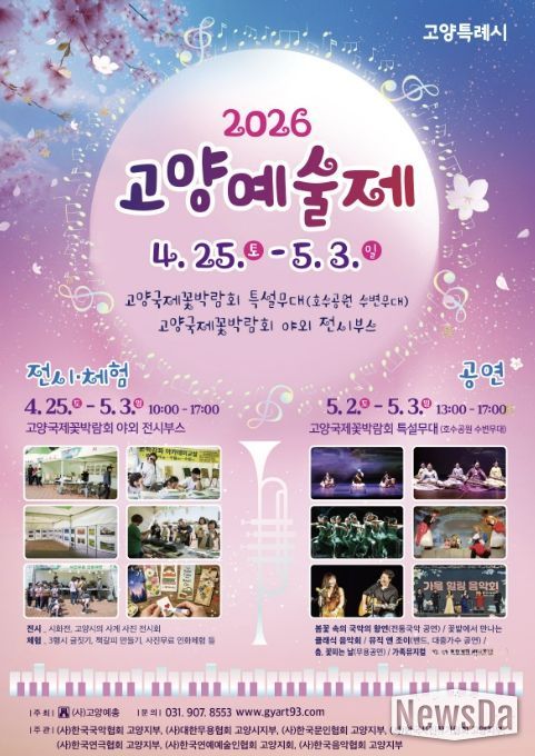 뉴스다 최광묵 기자 | 고양특례시의 봄을 수놓는 지역 예술 축제 ‘2026 고양예술제’가 오는 5월 3일까지 고양국제꽃박람회 특설무대와 야외 전시부스에서 개최된다.