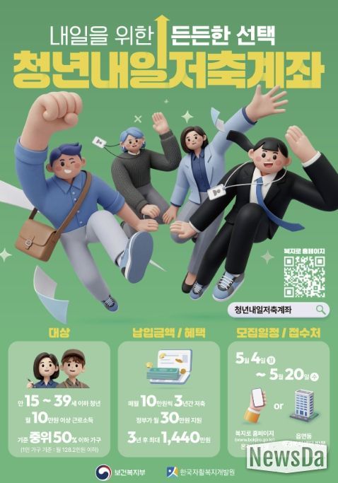 뉴스다 최광묵 기자 | 부천시는 일하는 저소득층 청년의 안정적인 사회 정착과 자산 형성을 지원하기 위해 ‘2026년 청년내일저축계좌’ 신규 가입자를 5월 4일부터 5월 20일까지 모집한다.