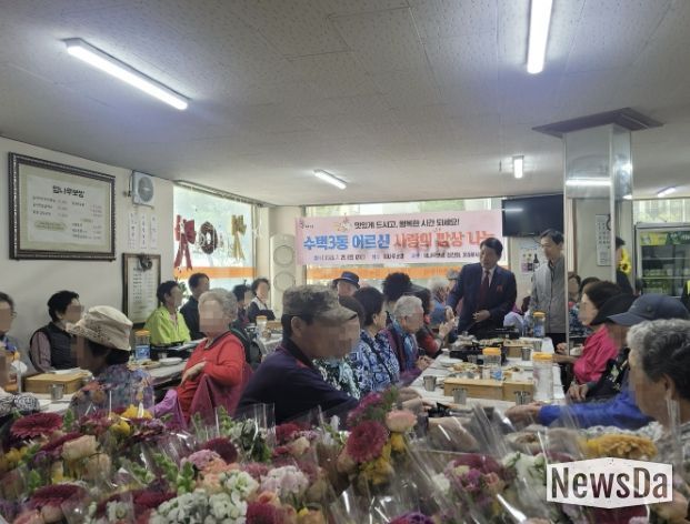 뉴스다 최광묵 기자 | 구리시 수택3동 행정복지센터는 지난 4월 25일 관내 음식점 엄나무보쌈과 함께 독거어르신들을 위한 사랑의 밥상 나눔 행사를 했다고 밝혔다.