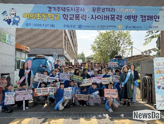 뉴스다 최광묵 기자 | 경기주택도시공사(GH)가 수원시 이의초등학교에서 사이버 학교폭력 예방을 위한 등굣길 캠페인과 찾아가는 예방교육을 실시했다고 27일 밝혔다.
