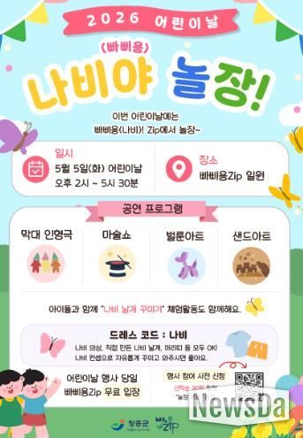 행사장에는 ‘나비 로드’가 조성되며, 드레스코드는 ‘나비’로 설정돼 나비 날개, 머리띠 등 다양한 소품과 의상을 활용해 아이들이 축제의 한 장면을 직접 완성하게 된다.