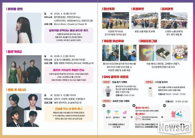 뉴스다 최광묵 기자 | 통영시는 오는 5월 2일 강구안 해상무대 및 일원에서 '2026 강구안 나이트 프린지, ‘투나잇 통영 즐거울 樂’'두 번째 공연을 개최한다.