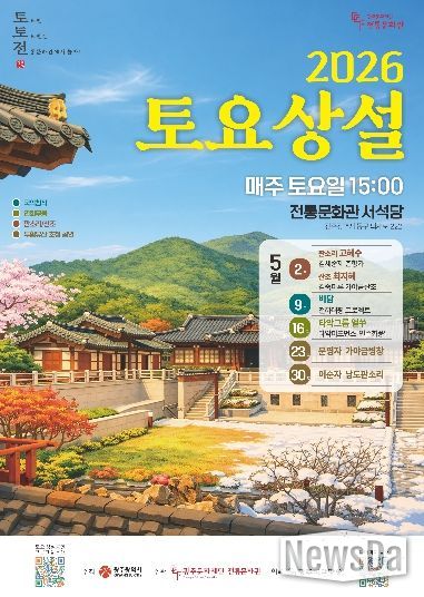 오는 5월 9일에는 국악창작 무대로, 비담의 ‘천하태평 프로젝트’ 공연이 이어질 예정이다. 공연 전에는 상설 체험 프로그램도 운영된다. 자세한 내용은 전통문화관 누리집에서 확인할 수 있다.