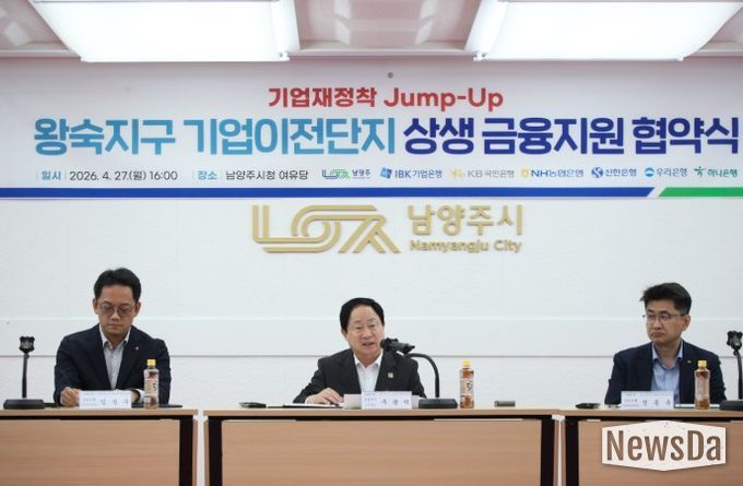 뉴스다 최광묵 기자 | 남양주시는 27일 왕숙신도시 개발로 이전이 필요한 기업의 안정적 재정착을 지원하기 위해 ‘왕숙신도시 기업재정착 점프업(Jump-up) 상생금융’ 업무협약을 체결했다고 밝혔다.