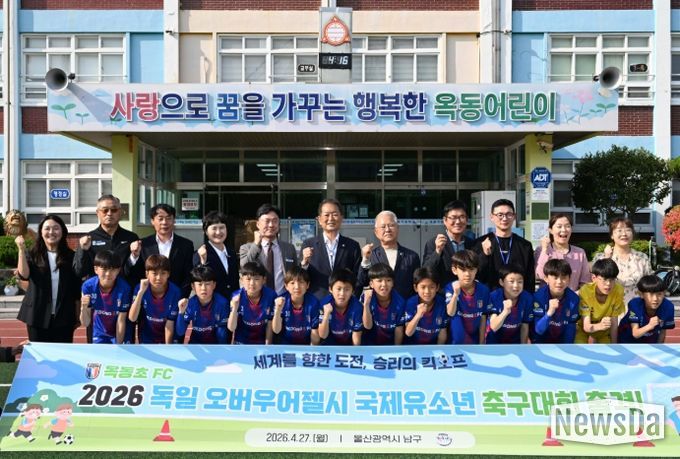 뉴스다 류대현 기자 | 울산 남구는 다음달 독일 오버우어젤시에서 열리는 ‘2026 국제유소년 축구대회’ 참가를 앞두고 있는 옥동초 FC 선수단을 찾아 격려의 시간을 가졌다.
