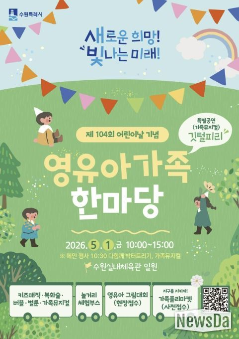 수원시 관계자는 “어린이날을 맞아 아이들이 즐겁게 뛰놀고 가족이 함께 소중한 시간을 보낼 수 있도록 행사를 준비했다”며 “영유아와 가족 모두에게 따뜻한 추억이 되는 하루가 되길 바란다”고 말했다.
