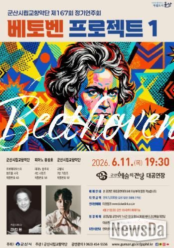 뉴스다 최광묵 기자 | 군산시립교향악단이 오는 6월 11일 오후 7시 30분, 군산예술의전당 대공연장에서 제167회 정기연주회 ‘베토벤 프로젝트 I’를 개최한다.