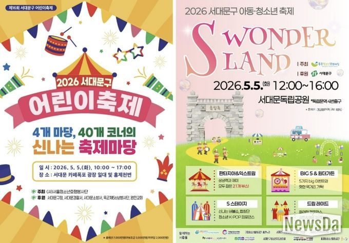 뉴스다 최광묵 기자 | 서대문구가 제104회 어린이날인 5월 5일 아동·청소년을 위한 두 개의 축제를 두 곳에서 각각 개최한다.