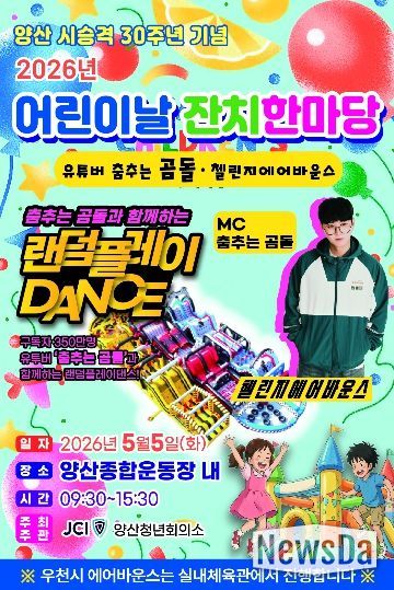 뉴스다 최광묵 기자 | 양산시는 5월 5일 9시 30분부터 15시 30분까지 양산종합운동장 주경기장에서 '2026년 어린이날 잔치 한마당' 행사가 개최된다고 밝혔다.