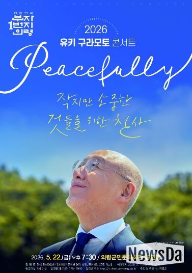 뉴스다 최광묵 기자 | 의령군은 자체 기획공연 ‘유키 구라모토 콘서트 'Peacefully'’가 오는 5월 22일 오후 7시 30분 의령군민문화회관 공연장에서 열린다고 밝혔다.