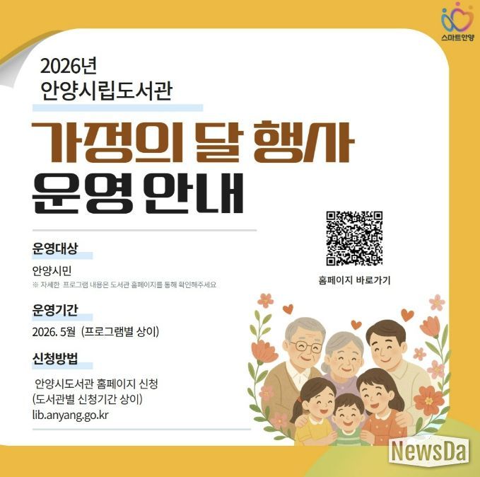 뉴스다 최광묵 기자 | 안양시도서관은 5월 가정의 달을 맞아 어린이와 부모가 함께하는 체험프로그램, 가족공연, 인문학 강연, 생활문화 강좌, 전시 등 다양한 행사를 마련했다.
