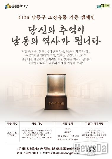 뉴스다 최광묵 기자 | 인천 남동문화재단이 시민과 함께 지역의 역사를 기록하는 유물 기증 캠페인을 본격 추진한다.