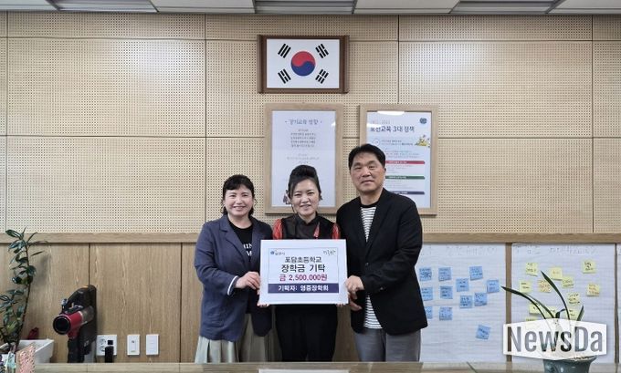 뉴스다 최광묵 기자 | 포천시 영중면 영중장학회는 지난 27일 지역 인재 양성을 위해 포담초등학교와 영중중학교를 방문해 장학금을 전달했다.