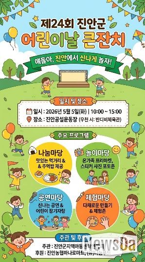 뉴스다 최광묵 기자 | 진안군지역아동센터연합회는 제24회 어린이날을 맞아 오는 5월 5일 오전 10시부터 진안공설운동장(우천 시 반다비체육관)에서 ‘어린이날 큰잔치’를 개최한다.