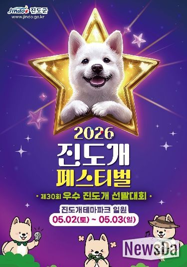 뉴스다 최광묵 기자 | 진도군이 오는 5월 2일부터 3일까지 이틀간 진도개테마파크에서 ‘진도개의 고향, 진도개테마파크에서의 만남’을 주제로 ‘2026 진도개 페스티벌’과 ‘제30회 우수 진도개 선발대회’을 동시에 개최한다.