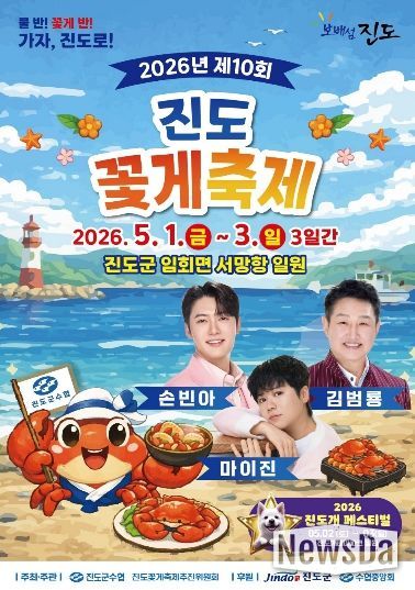 뉴스다 최광묵 기자 | 진도군은 봄 꽃게의 제철을 맞아 5월 1일부터 3일까지 3일간 임회면 서망항 일원에서 ‘제10회 진도 꽃게 축제’를 개최한다.