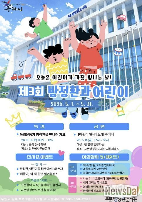 뉴스다 최광묵 기자 | 구리시는 5월 가정의 달과 어린이날을 맞아 어린이 선언의 주역인 방정환 선생의 뜻을 기리는 ‘제3회 방정환과 어린이’ 행사를 5월 1일부터 개최한다고 밝혔다.
