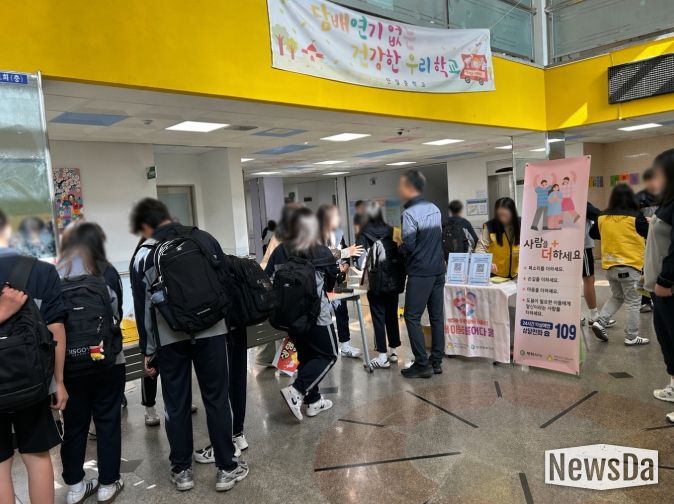 뉴스다 최광묵 기자 | 평택시 안중보건지소는 봄철 자살률이 증가하는 이른바 ‘스프링피크(Spring Peak)’시기에 대응하고자, 지난 24일 안일중학교에서 ‘생명존중 캠페인’을 실시했다.