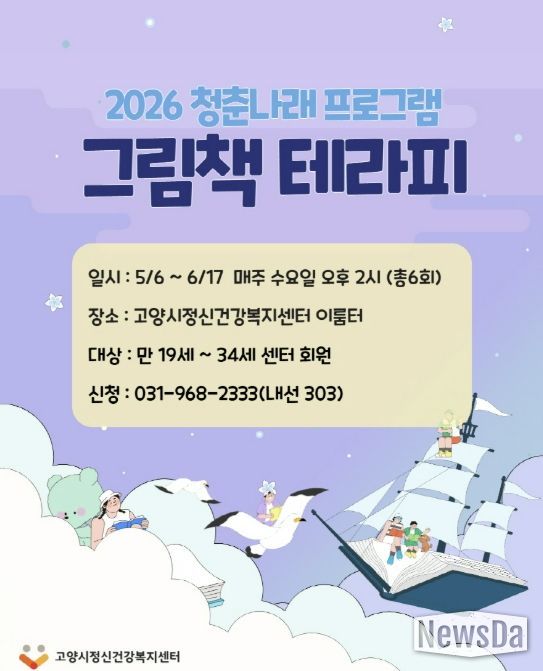 뉴스다 최광묵 기자 | 고양시정신건강복지센터는 청년들의 정서적 안정과 자기 이해를 돕기 위해 2026년 청춘나래 집단프로그램 ‘그림책 테라피’를 오는 5월 6일부터 운영한다.
