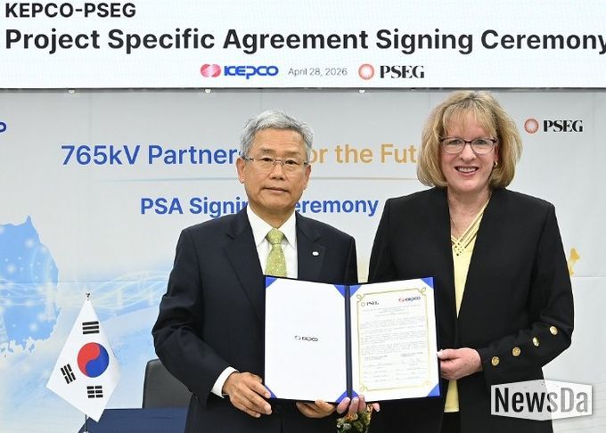뉴스다 최광묵 기자 | 한국전력이 4월 28일 서울 양재동 한전 아트센터에서 미국 에너지기업 PSEG社와 765kV 초고압 송전망 사업 협력을 위한 계약을 체결했다.