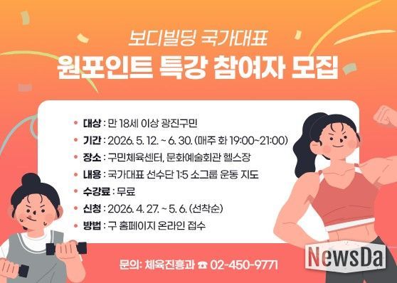 뉴스다 류대현 기자 | 광진구가 구민의 건강한 여가생활과 생활체육 활성화를 위해 ‘국가대표와 함께하는 원포인트 특강’을 운영한다.