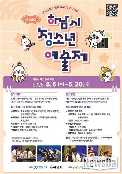 뉴스다 최광묵 기자 | 하남시가 주최하고 하남시청소년수련관이 주관하는 ‘2026 제34회 하남시청소년예술제’가 오는 6월 13일 하남시청소년수련관에서 개최된다.
