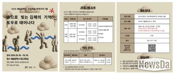 조일웅 문화도시센터장은 “이번 오감예술 창작프로그램이 시민들에게 창의적인 예술 체험 기회를 제공하고, 김해 지역 문화 활성화와 시민 참여 확대에 기여하는 계기가 되길 기대한다”고 밝혔다.