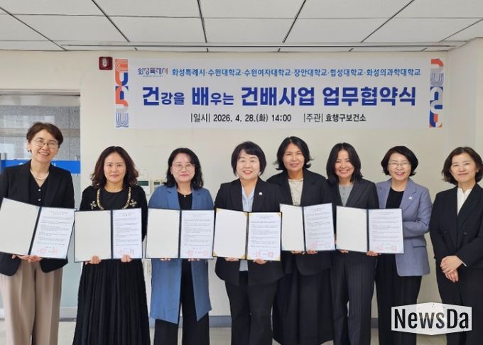 뉴스다 최광묵 기자 | 화성특례시 효행구보건소는 28일 오후 2시, 지역 대학 보건 관련 학과와 함께 ‘건강을 배우는 사업(건배사업)’ 추진을 위한 업무협약을 체결한다.