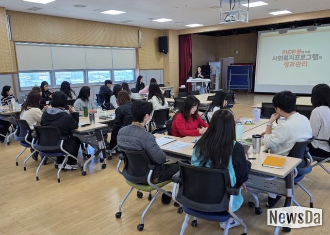 교육은 고이경 한국복지경제연구원 책임연구원을 초청해 ‘환경 속의 인간(PIE) 관점에 따른 사회복지 프로그램 성과관리’를 주제로 진행됐다.