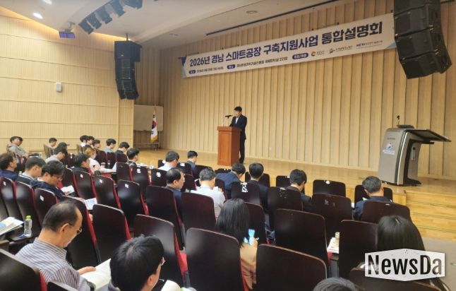 뉴스다 최광묵 기자 | 경상남도는 28일 경남테크노파크 경남창원과학기술진흥원에서 ‘2026년 경남 스마트공장 구축 지원사업 통합 설명회’를 개최하고, 제조 인공지능(AI) 기반 스마트공장 보급·확산에 속도를 낸다고 밝혔다.
