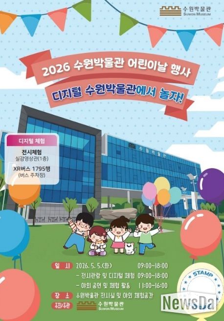 뉴스다 최광묵 기자 | 수원박물관은 5월 5일 오전 9시부터 오후 6시까지 전시실과 야외 체험 공간에서 어린이날 행사 ‘디지털 수원박물관에서 놀자!’를 연다.