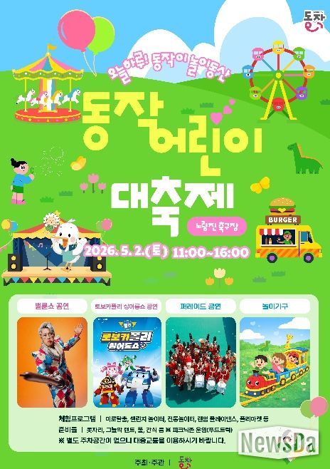 뉴스다 최광묵 기자 | 동작구가 어린이날을 맞아 어린이와 가족이 함께 즐기는 ‘2026 동작어린이대축제’를 개최한다고 밝혔다.