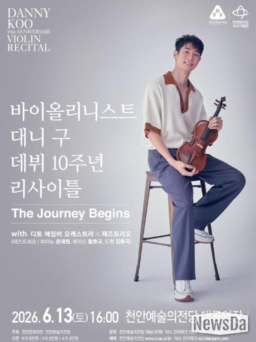뉴스다 최광묵 기자 | 천안문화재단은 오는 6월 13일 천안예술의전당 대공연장에서 바이올리니스트 대니 구 데뷔 10주년 기념 리사이틀 ‘The Journey Begins’를 개최한다고 29일 밝혔다.