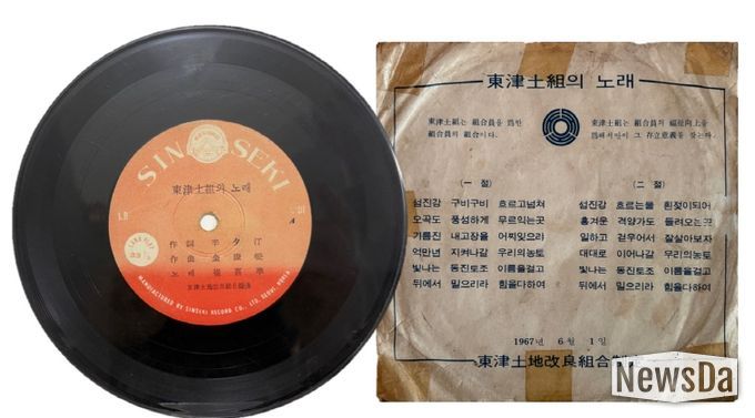이번 전시는 지난 1968년 제작된 '동진토조의 노래'음반을 중심으로, 농업 기반 지역 공동체의 문화와 정서를 조명한다. 해당 음반은 1925년 창립된 동진토지개량조합의 창립 42주년을 기념해 제작된 것으로, 작사자 ‘신석정(辛夕汀)’으로 표기되어 있으며 조합원의 결속과 지역 정체성을 담아낸 기록물이다.