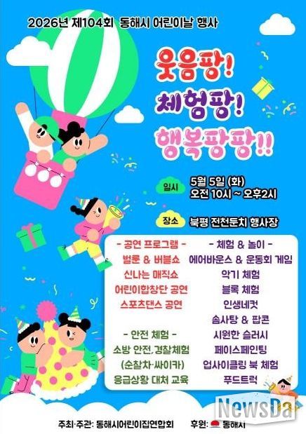 이번 행사는 동해시어린이집연합회(회장 배복자) 주관으로 추진되며, 다채로운 볼거리와 체험거리를 통해 어린이와 가족 모두가 함께 즐길 수 있는 어린이날 행사로 운영될 예정이다.