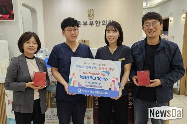 바른부부한의원은 2022년 6월 매교동에 개원한 이래 지역사회에 대한 깊은 애정으로 저소득층 노인들의 건강을 위해 2025년 4월 매교동 행정복지센터와 업무협약을 맺고 녹용경옥고를 정기적으로 기탁하고 있다. 현재까지 총 140박스(26,000천원 상당)를 지원해 취약계층 어르신들의 기력 회복과 건강 관리에 실질적인 도움을 드리고 있다.