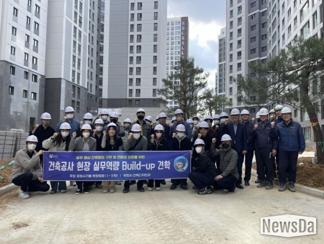 뉴스다 최광묵 기자 | 부천시는 지난 28일 건축업무 담당 공무원의 현장 대응력 향상을 위해 ‘건축공사 현장 실무역량 빌드업(Build-up) 견학’ 2차 과정으로 소사구 송내동 ‘송내역 푸르지오 센트비엔’ 마감공사 현장을 방문했다.