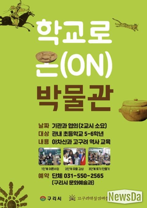 뉴스다 최광묵 기자 | 구리시는 4월 28일부터 오는 9월까지 고구려 유물 상자를 들고 관내 초등학교를 찾아가는 ‘학교로 온(ON) 박물관’프로그램을 운영한다고 밝혔다.