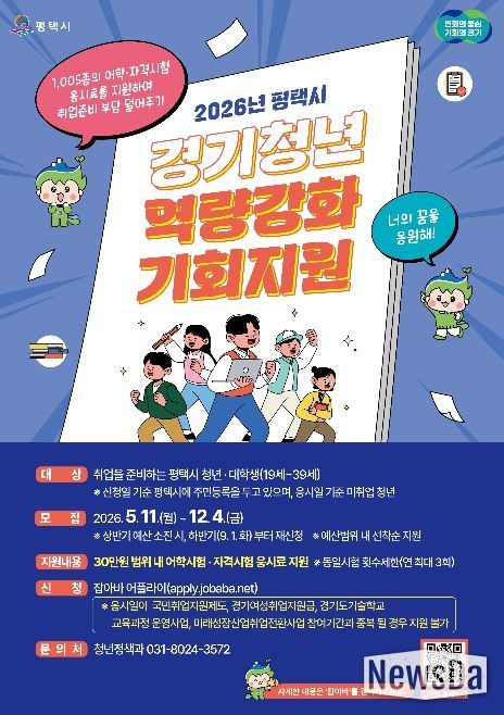 뉴스다 최광묵 기자 | 평택시는 미취업 청년들의 취업 준비 부담을 덜어주고 취업에 필요한 자격 기준을 갖출 수 있는 기회를 마련하여 지속적인 취업 도전 의지를 제고해주는 '경기청년 역량강화 기회지원'사업을 추진한다.