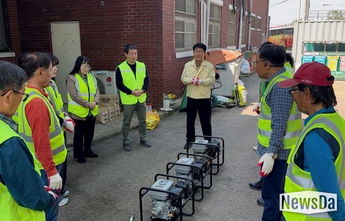 이번 점검에는 자율방재단원과 관계 공무원이 함께 참여해 양수기와 수중펌프 등 수방장비의 작동 상태를 확인하고, 실제 침수 상황을 가정한 시운전을 통해 현장 대응력을 점검했다.
