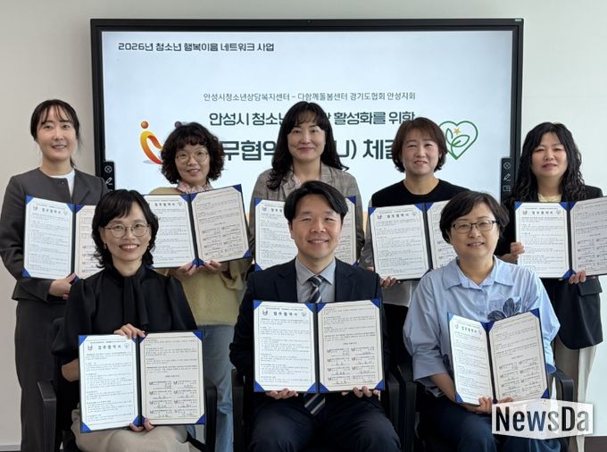 뉴스다 최광묵 기자 | 안성시청소년상담복지센터는 지난 27일 안성맞춤공감센터에서 다함께돌봄센터 경기도협의회 안성지회와 청소년의 건강한 성장과 복지 증진을 위한 업무협약(MOU)을 체결했다.