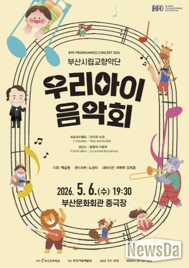 뉴스다 최광묵 기자 | (재)부산문화회관(대표이사 차재근)은 5월 가정의 달을 맞아 온 가족이 함께 즐길 수 있는 부산시립교향악단 기획공연 '우리 아이 음악회'를 오는 5월 6일 오후 7시 30분, 부산문화회관 중극장에서 개최한다.