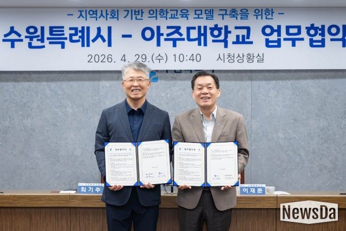 뉴스다 최광묵 기자 | 수원특례시와 아주대학교가 지역사회에 기반을 둔 새로운 의학교육 모델을 구축하고, 미래 지역 의료인 양성을 위해 힘을 모은다.