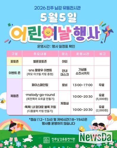 뉴스다 최광묵 기자 | 진주시는 다가오는 5월 가정의 달과 어린이날을 맞아 박물관·미술관 등의 문화시설에서 다채로운 문화 체험 행사를 개최한다고 밝혔다.